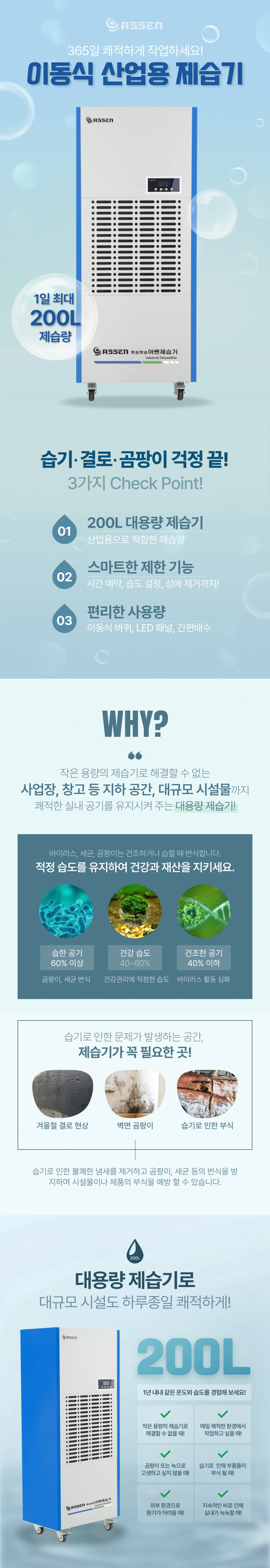 아쎈 산업용 제습기 AT-200P (자연배수) 펌프 서비스 연장선 서비스